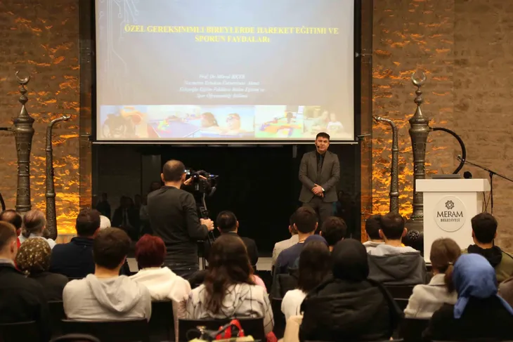 KONYA (İGFA) – Meram Belediyesi, Necmettin Erbakan Üniversitesi ve Konya İl Milli Eğitim Müdürlüğü işbirliği ile hayata geçirilen Down Sendromlu Bireyler Yaşam Destek Merkezi DOSD Meram’ın her ay periyodik olarak gerçekleştirdiği seminerlerin kasım ayı konuğu Necmettin Erbakan Üniversitesi Ahmet Keleşoğlu Eğitim Fakültesi Dekanı Prof. Dr. Mürsel Biçer oldu. Özel birey aileleri, DOSD Meram Derneği Yöneticileri, üniversite lisans ve yüksek lisans öğrencileri ile akademisyenlerin katıldığı seminerde Prof. Dr. Biçer, ‘Özel gereksinimli bireylerde hareket eğitimi ve sporun faydaları’nı anlattı.
